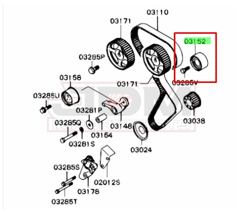 Rodamiento fijo de distribución, utilizado para dar la correcta tensión a la correa de distribución, se recomienda su reemplazo al momento de cambiar el kit de distribución. Sugerimos ver el diagrama para saber su posición.